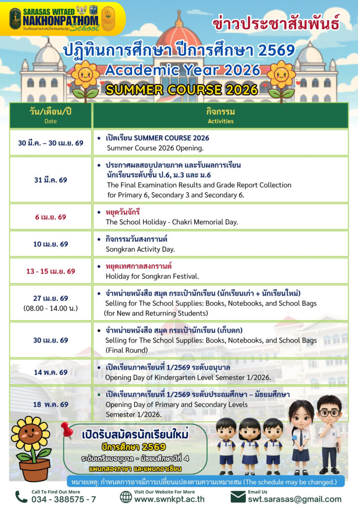 กำหนดการต่างๆ ในโรงเรียน